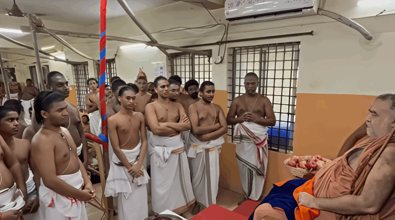 Mylapore Veda Adhyayana Sabha is delighted to announce that our Dhanur Maasa (Marghazi – மார்கழி) daily Veedhi Parayanam will commence on 16th December 2024. The parayanam will start from our Sabha premises on Pitchu Pillai Street at 5:30 AM each day, proceed clockwise through all the Mada Streets, and conclude back at the Sabha premises around 6:30 AM. We warmly invite donors and patrons to participate in this auspicious event.